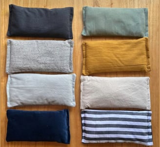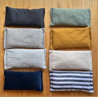Rellenas con semillas de lino, lavanda, aceites esenciales. Confeccionadas en tusor o en pana, en diferentes colores.